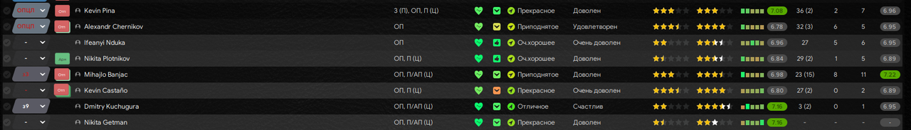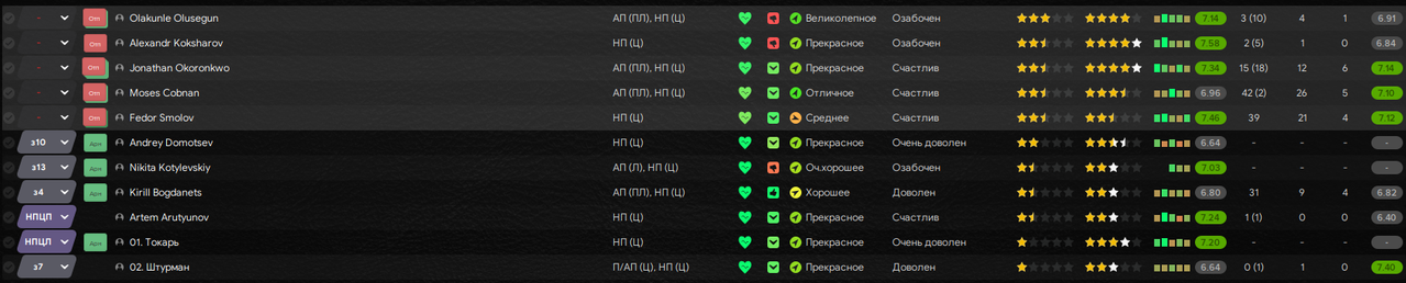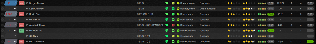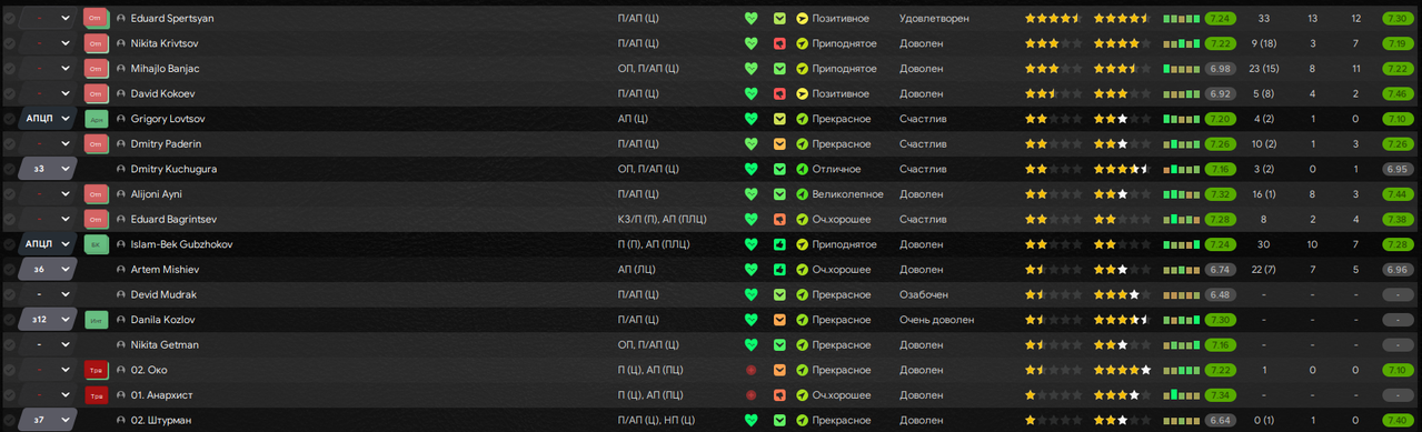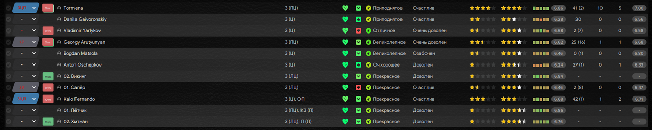 Цитата: N1ghtW01f от 06 декабря 2025, 16:06:14С промоушеном! Вроде и ожидаемо, но получилось крайне уверенно!Спасибо! Володя был очень хорош и в других моих сейвах в 12 и 13 FM-ах (а в 15-м в первом сезоне был лучшим бомбардиром моего «Торпедо», но забил тогда меньше 10-ки), даже в сборную стучался (например, в этой истории он наиграл за Россию 6 матчей и забил 1 гол, но выходит обычно на последних минутах вместо Гаджибекова/Лысцова, либо и вовсе просиживает целые турниры на лавке, как минувший Кубок Конфедераций). При игре в 4-4-2 я каких-то хитромудрых схем при стандартах не использовал, когда играли сезон в Примере пробовал народную тактику в 4-3-3 где всё это добро применялось, но тогда всю славу забрал Давид Матеос (10 голов), а Рыков не отличился ни разу.![]()