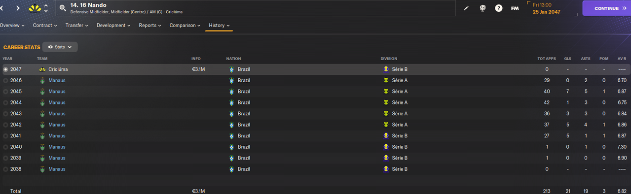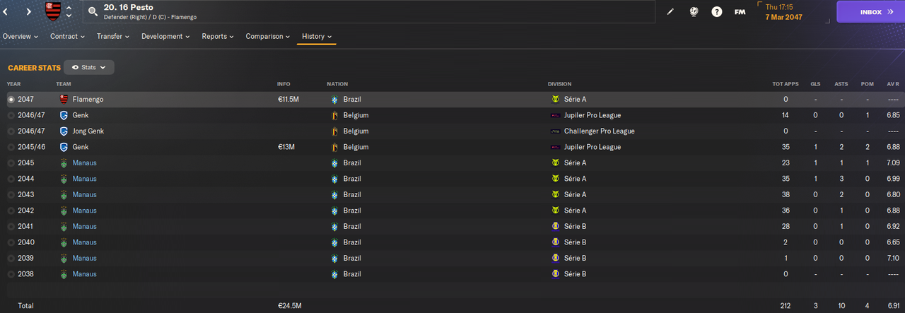 15.01.2041 12 Heinrich 22 года 193 игры 26 голов ---------> Aparecidense 15k