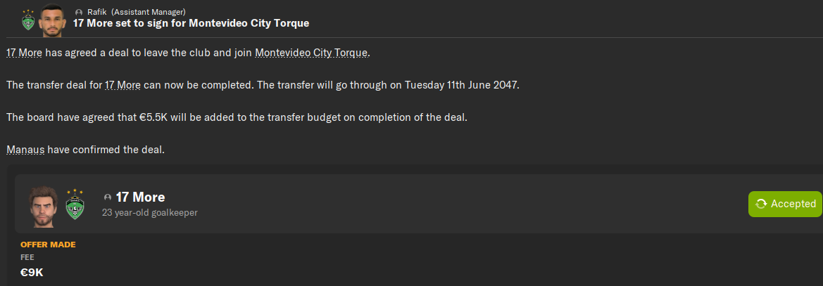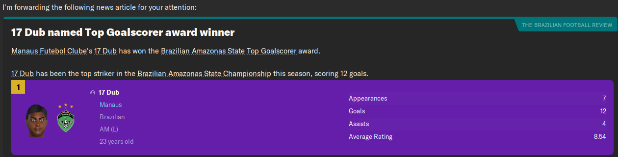 29.07.2031 07 Napoleon 17 лет 61 игра 21 гол ------> Fortaleza 300k + 75k после 10 матчей