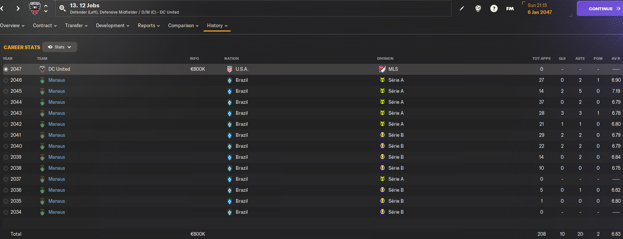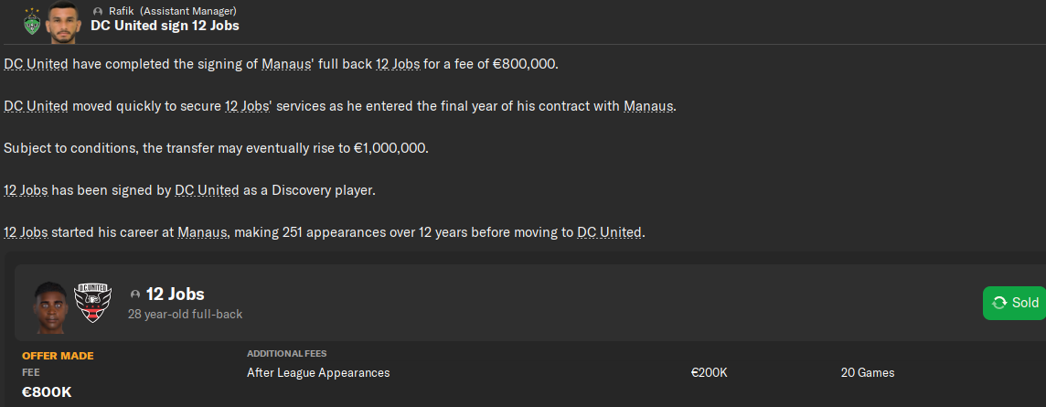 У Джобса 251 игра за Манаус, ну и забил 14 голов. Игроком основы Джобс никогда не был, но определенную пользу приносил последние сезонов 9. Удачи в США.
