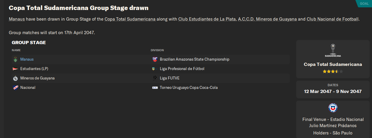 Нам достался аргентинский Эстудиантес, Минерос де Гуаяна из Венесуэлы, а также уругвайский Насиональ. Вообще должны проходить дальше и довольно легко, но мы помним чем все закончилось в прошлом сезоне. Венесуэльцы - явные аутсайдеры, а вот другие вполне могут навязать борьбу, особенно аргентинцы.