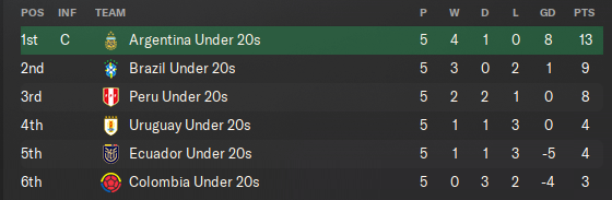 U20 Бразилии заняла в чемпионате только второе место, пропустив вперед сверстников из Аргентины: