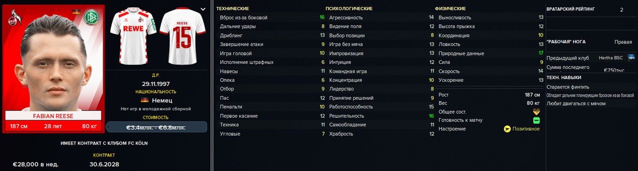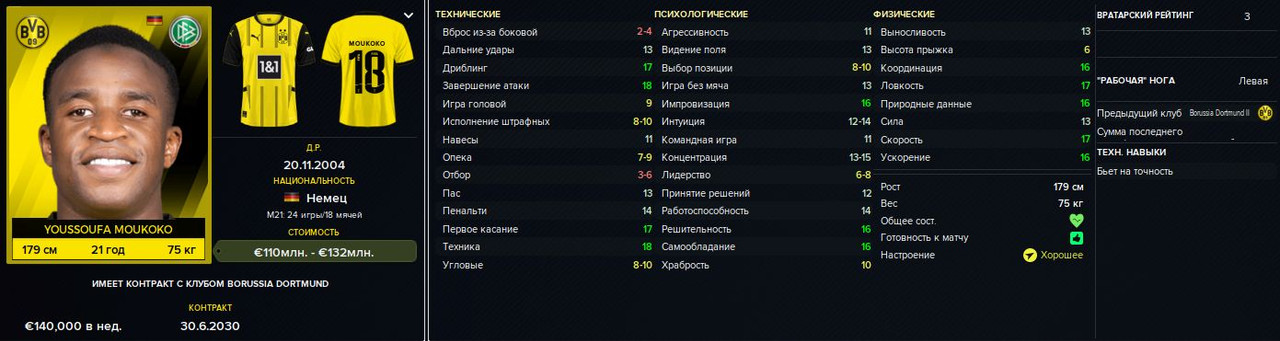 Выборка, конечно, не ахти (учитывая склонность FM завышать рейтинги голкиперам в любых «сухих» играх), но против «Гладбаха» бельгиец действительно провёл шикарный матч, а в остальных просто не допускал ошибок и выглядел увереннее того же Юханссона. С учётом возраста — уже очень и очень здорово.