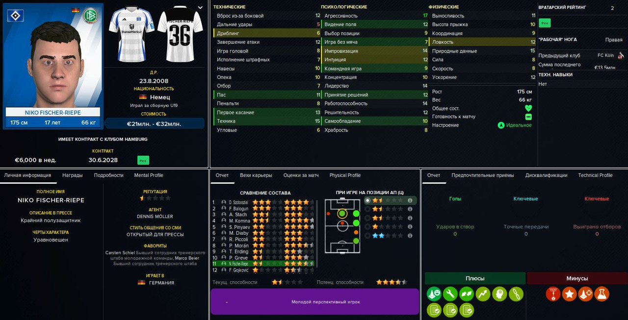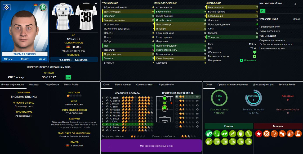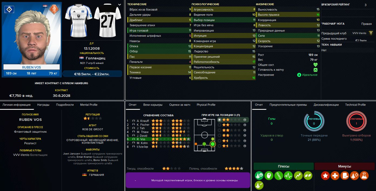 Руководство «Гамбурга» предложило моему альтер эго продлить контракт с клубом. Новое соглашение с з/п 40 тыс. в неделю теперь действует до 2030 года.