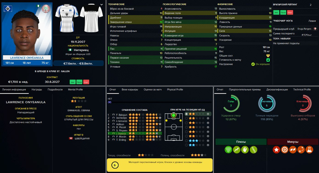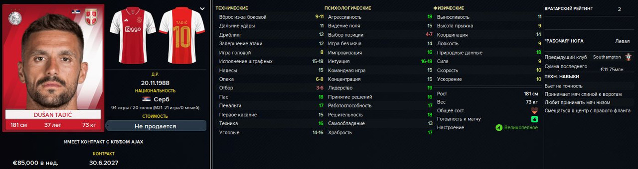 Долго сомневался, стоит ли отдавать за него такую сумму. Наши фанаты считают, что нет, и если рассматривать его как «крайка» — с ними сложно не согласиться: на фланге он может играть только в специфической роли, не требующей умения бегать с мячом в ногах (ФП, ФЗ(з) и т.п.). К тому же, при всём таланте он — не вундеркинд. Но я беру его для переучивания в универсального центрального полузащитника. Даже если не станет звездой, деньги должен отбить.