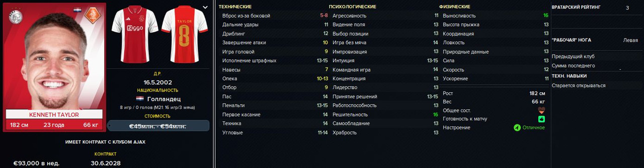 Парня кроме нас вели «Аякс», «Пари Сен-Жермен» и все английские топы. Рослый, храбрый и трудолюбивый голландец может сыграть как справа, так и в центре защиты. Есть куда расти в плане силе, выбора позиции и опеки, но они не проседают настолько, чтобы об этом можно было серьёзно беспокоиться в будущем. Есть небольшая предрасположенность к травмам и ненужным фолам, но в перспективе Рюбен — игрок основы команды, да ещё и со статусом воспитанника.