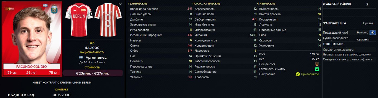 Испанец уже сейчас выглядит не хуже Лунна, и даже при своём среднем характере может прибавить 1.5 звезды. Немного смущают решительность и первое касание, но других слабых мест я у него не вижу.