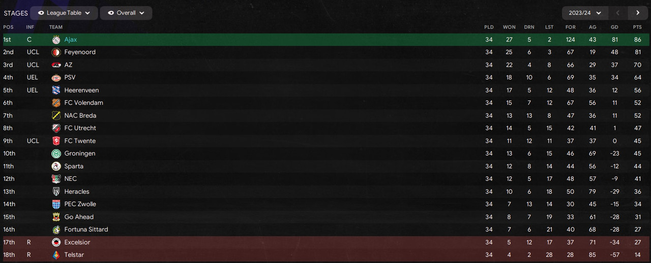 У тебя в первом сезоне Фейеноорд какое место занял? Какой-то он лютый.
