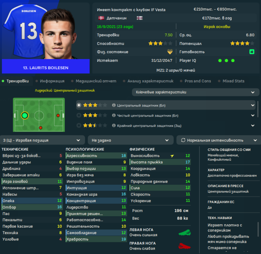 Knud Ketelesen - молодой и перспективный кипер из Копенгагена. Взял в аренду, и через несколько матчей понял, что выкуплю его за прописанные 1.2 млн. (Твейт, конечно, неплох, но уже давно достиг пика потенциала). Но случился конфуз - проглядел я, что договаривался использовать его как классического вратаря, а в моей схеме чистильщик. Для меня - мелочь, для Копенгагена - трагедия. Отозвали парня аккурат перед стартом в ЛЧ. Обидно. Спойлер: в конце сезона я его выкупил, правда за 2.1 млн...