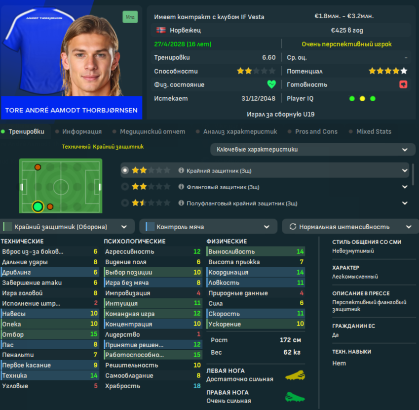 Tore Ande Aamoot Thorbjornsen - очень удачно на фри выцепили перспективного крайнего защитника. Судя по оценочной стоимости, не прогадали. Пока попылит в Ю21, а попозже подтянем в основную обойму.