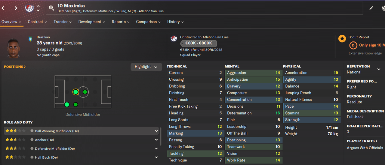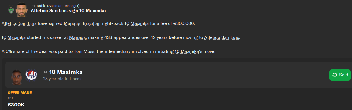 Максимку никак не хотели брать из-за высокой зарплаты, в итоге Любко пришлось даже привлекать агента и продавать опорника за смешные 300к. Но хорошо, что хоть так нашлись мексиканцы, которые готовы были насыпать игроку приличную зарплату: