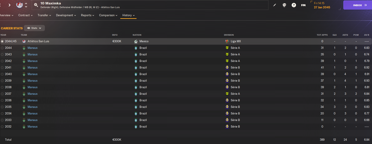 15.01.2041 12 Heinrich 22 года 193 игры 26 голов ---------> Aparecidense 15k