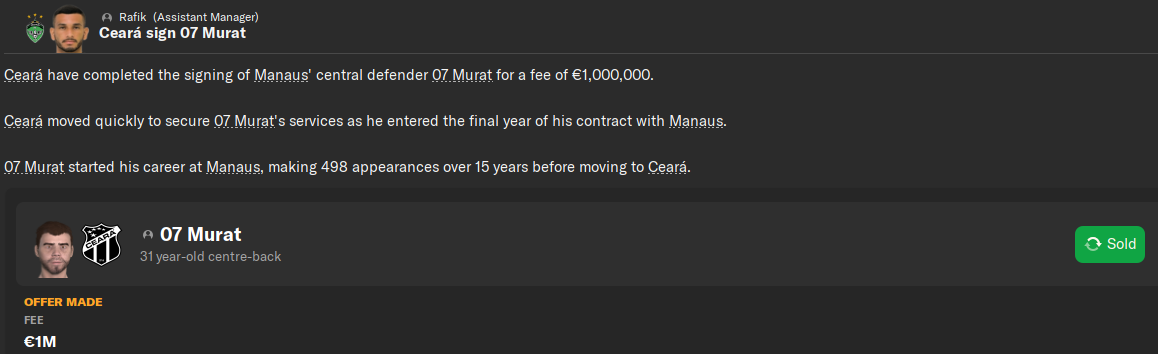 29.07.2031 07 Napoleon 17 лет 61 игра 21 гол ------> Fortaleza 300k + 75k после 10 матчей
