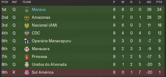 Забавно, что последний матч был именно с Амазонасом. К нему обе команды подошли без потерь очков, но в личной встрече Манаус показал, что сильнее.