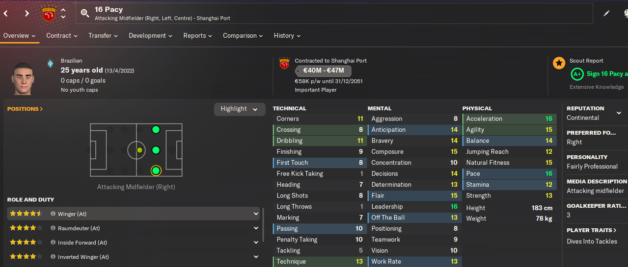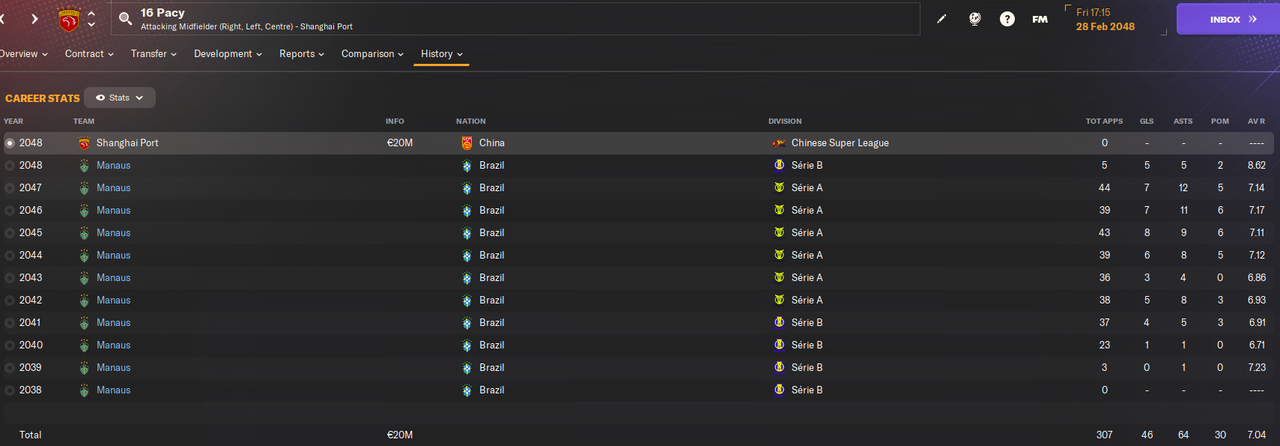 28.02.2048 16 Pacy 25 лет 360 игр 47 голов  ------------> Shanghai Port 20 миллионов + 5 миллионов за 50 матчей