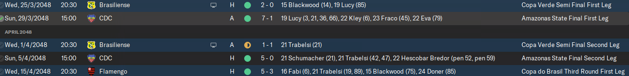 Пока идем без потерь, правда, в Кубке Бразилии нам нажеребили Фламенго, главного фаворита на победу в Серии А. Т.е. номинально самого сильного соперника. С другой стороны проверить свои силы против них будет очень интересно.