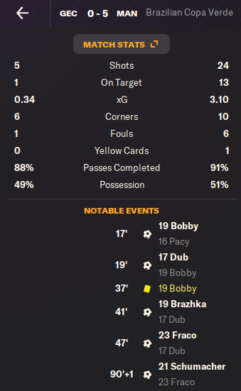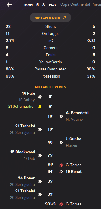 Играли в совсем атакующий вариант с плеймейкером на месте опорника и получилось все как-то слишком легко. Наша полная доминация, итоговый счет 5:0 и подавляющее преимущество по статистике. Такие матчи уже вселяют определенный оптимизм. И веру в тактику.