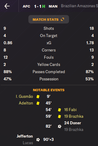 Амазонас наверняка хотел реабилитироваться за разгром в групповом этапе и этот матч получился совсем другим. Мы все еще были лучшей командой, но реализовать свои моменты не получалось, пока вышедший на замену Донер не затолкал мяч в ворота хозяев после углового. Амазонас даже отыгрался в компенсированное время, но ничьей нам вполне хватило для прохода в финал.