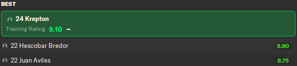 Еще хочу отметить тройку игроков, которая в последнее время тренировалась лучше всех. Отчеты о тренировках несколько недель подряд выглядели следующим образом:
