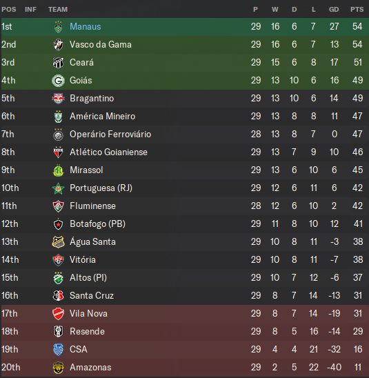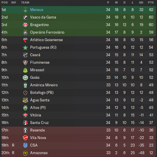 Пока все довольно комфортно. Две победы в оставшихся матчах позволят Манаусу вернуться в Серию А.