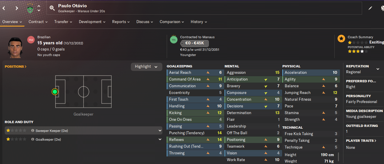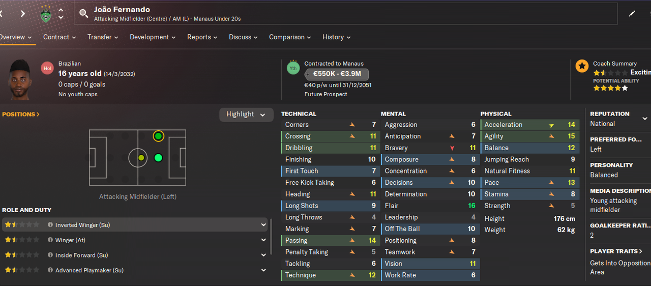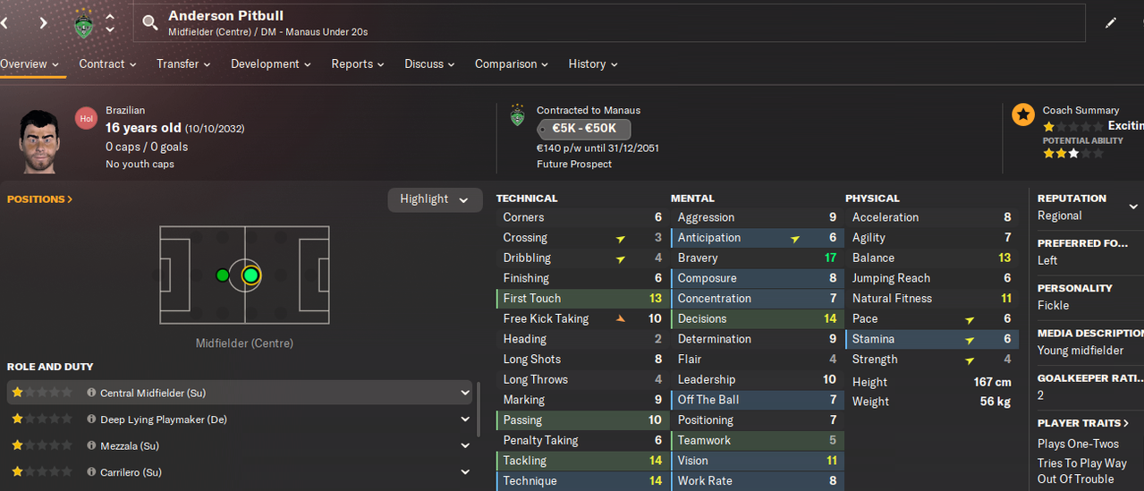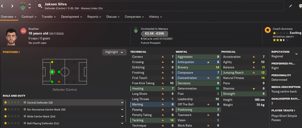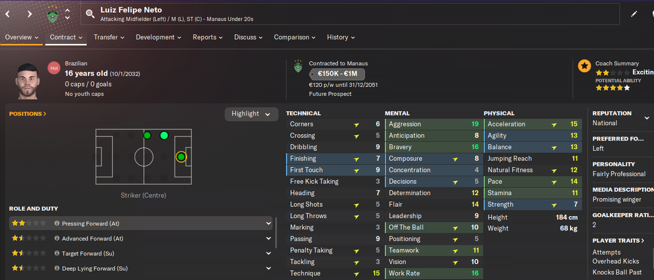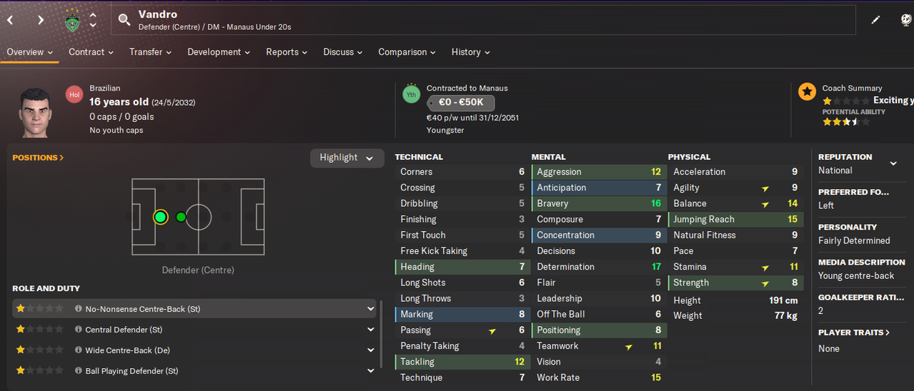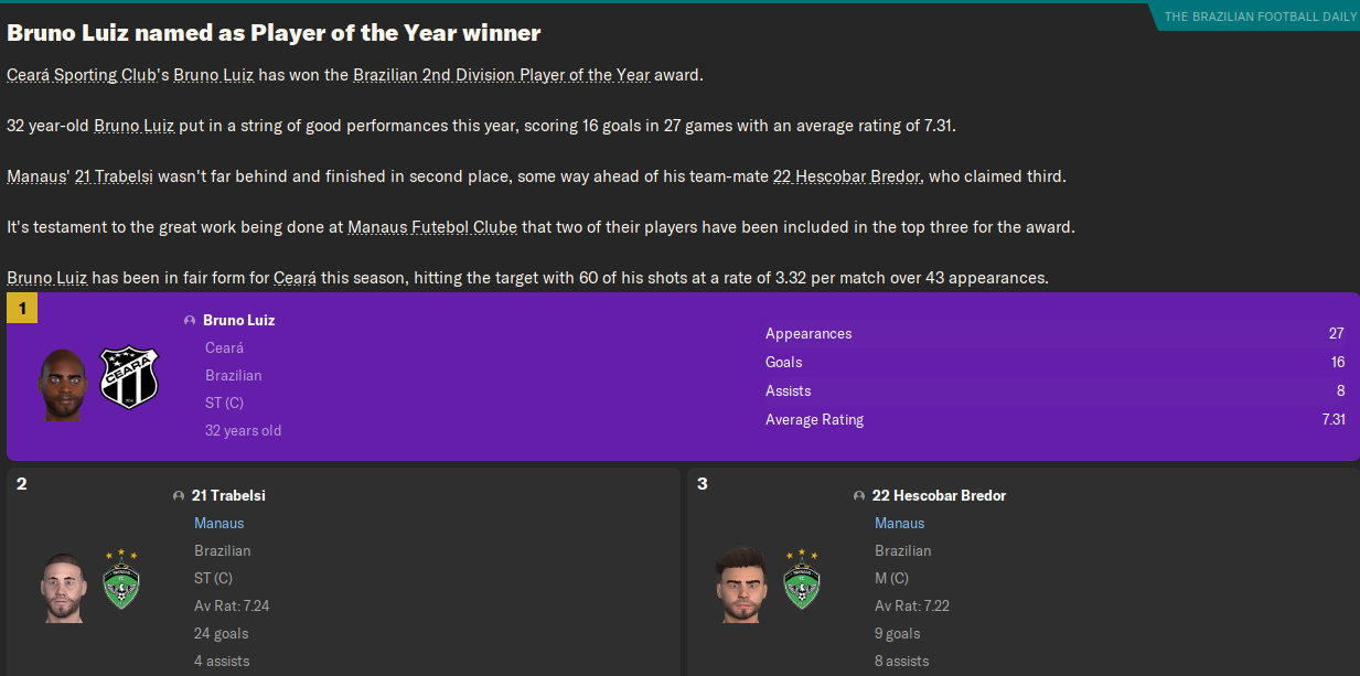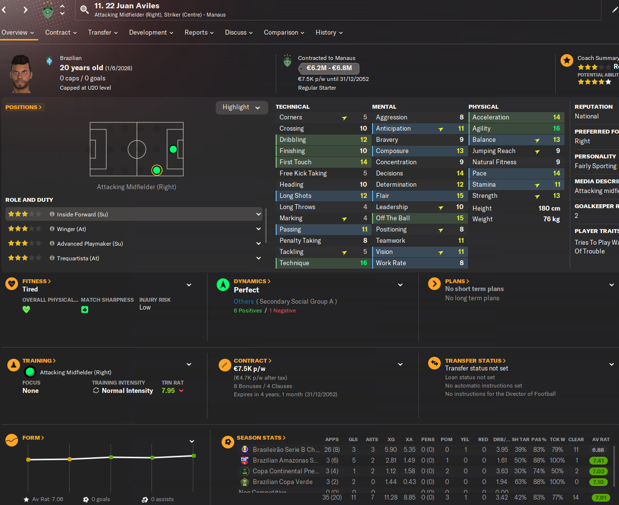 Двое других - 19-летние Санта и Роб. У обоих истекал контракт и оба хотели зарплату в 1.1к в неделю. При этом оба не особо развились, а Роб еще и неамбициозный. У обоих лишь один матч за Манаус, причем Санта в нем отметился хеттриком, а Роб сделал 2 ассиста. Но была это игра против совсем слабого соперника в чемпионате штата.