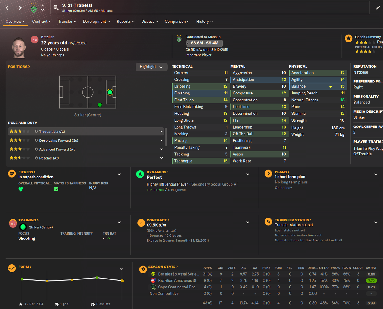 При этом у Тремулосо в 4 играх за Манаус целых три гола! Два, конечно, против слабого соперника в чемпионате штата в дебютном матче, но один в Серии В! Может быть шансов парень не дополучил, но так иногда бывает. Думаю, его кто-нибудь обязательно подберет.