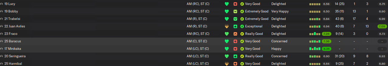 Тут больше всего обращает на себя Бражка со средним рейтингом 7.15 (при этом защитник сам по себе косячный), ну и Хуан Авилес с 7.09 и великолепной статистикой. Наш лучший игрок атаки, но про именных арчибальд чуть позже.