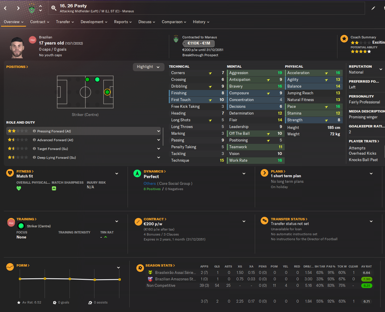 Прошу обратить на комбинацию текущих скиллов, потенциала, пометки "promising", двуногости и характера.