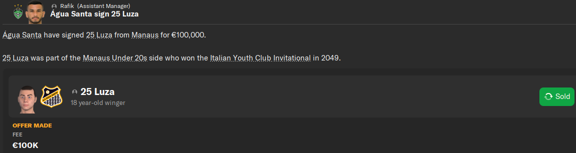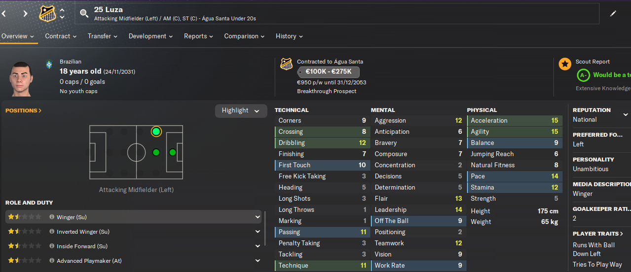02.09.2050 25 Luza 18 лет 1 игра 1 гол -------------> Agua Santa 100k