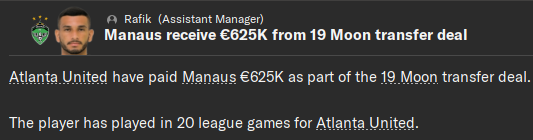 Мун довольно оперативно отыграл в США 20 матчей за Атланту, что принесло нам дополнительные 625к в заветный миллиард по условиям его трансфера.