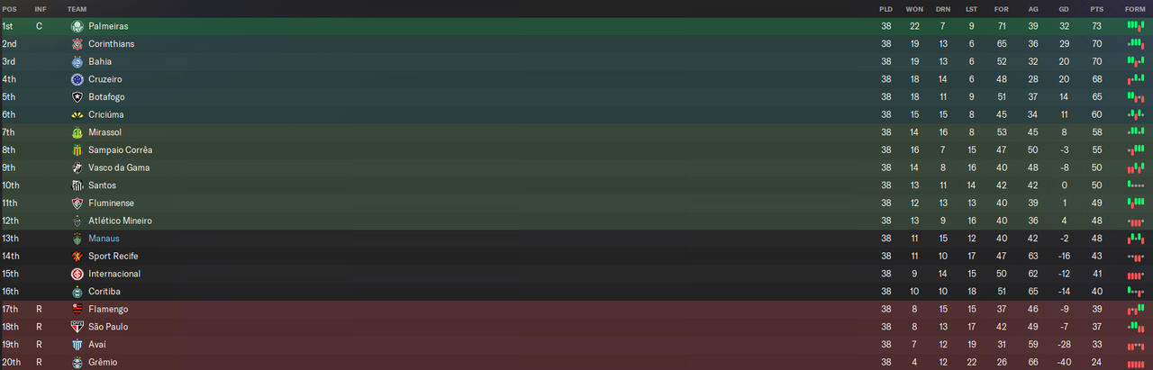 И знаете что? Все конкуренты выиграли свои матчи и Манаус свалился на 13-е место: