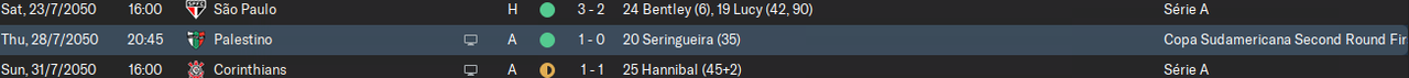 У Сан Пауло в этом сезоне произошел какой-то коллапс и те идут на последнем месте. У нас же целая группа игроков получила отдых. И неожиданно получилось выиграть даже так! Зарешал Люси сделавший 2+1 и забивший решающий гол на 90-ой минуте. У Барни кстати голевой пас нас победный мяч.