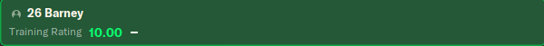 Игрок неплохой и перспективный, но все упирается в неамбициозный характер, так что расти особо не будет, а теперь еще и потерял место главного сменщика Бобби. Тут его подвинул ярко сверкнувший Барни. Тот уже сейчас сильнее и тренируется на десятку: