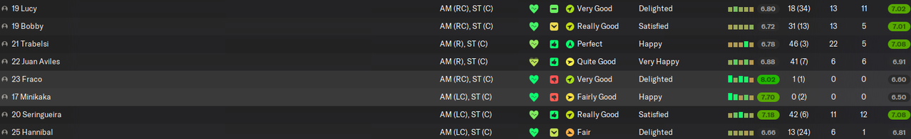 Эти скрины с первого взгляда не дают полной картины. Есть очень приятные моменты, а есть грустные. Из позитива: сразу четыре игрока с приставкой "promising", но в то же время - с характером повезло далеко не всем.