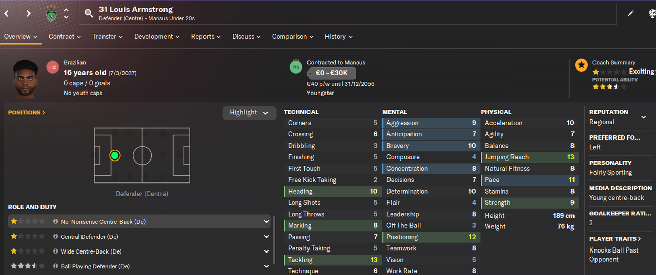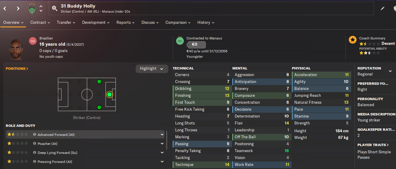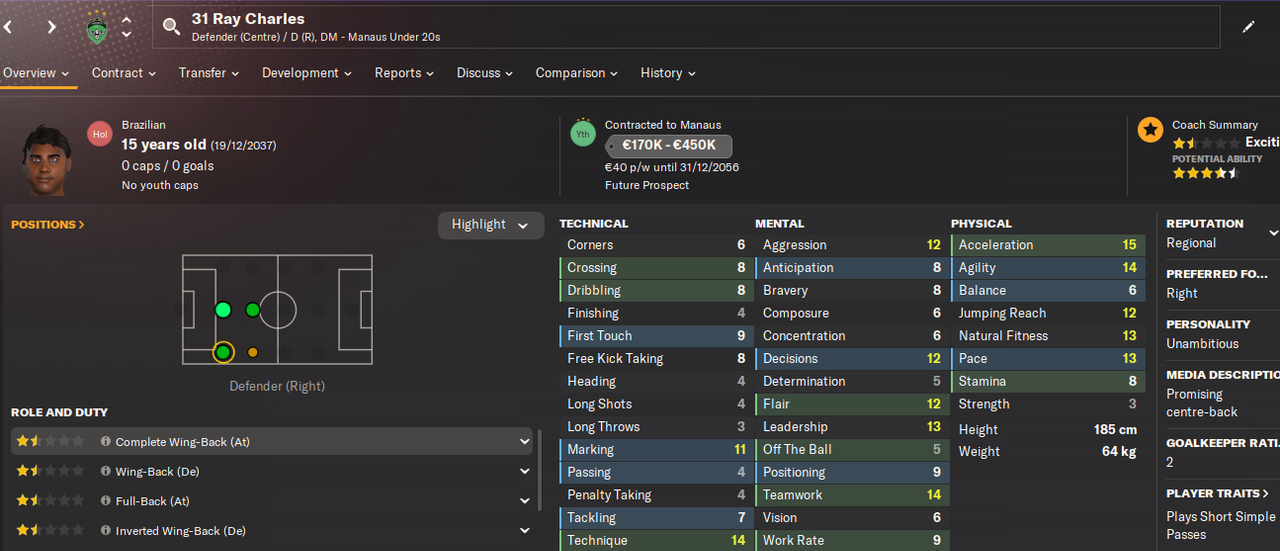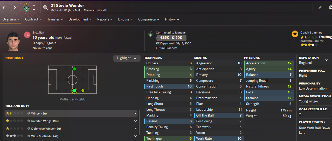 Есть все задатки для техничного бегунка на фланг, но характер тоже не идеальный. Да и менталка просто отсутствует. Не думаю, что что-то толковое вырастет.