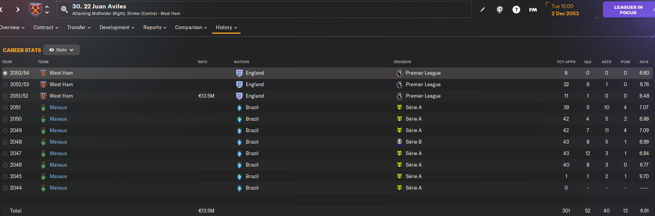 Вест Хэм сейчас не самый сильный английский клуб. Прошлый сезон окончил в нижней части таблицы, в этом вообще пока идет в зоне вылета. Но так или иначе Хуан Авилес играет в АПЛ, в основе. Может быть звезд с неба не хватает и не очень выделяется, но сама по себе АПЛ - это уже топовый уровень.