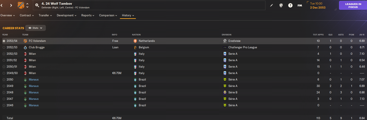А вот тут произошли важные изменения, причем определенно позитивные. На вторую половину прошлого сезона парень уходил в аренду в Брюгге, где получил какую-то игровую практику. Летом у него истек контракт с Миланом и парень бесплатно ушел в Волендам из Эредивизе. Волендам - аутсайдер, но Вольф наконец получил железное место в основе. Лучших условий для прогресса придумать сложно.