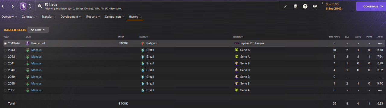 06.09.2043 15 IIsus 22 года 40 игр 9 голов ----------> Beerschot 400k