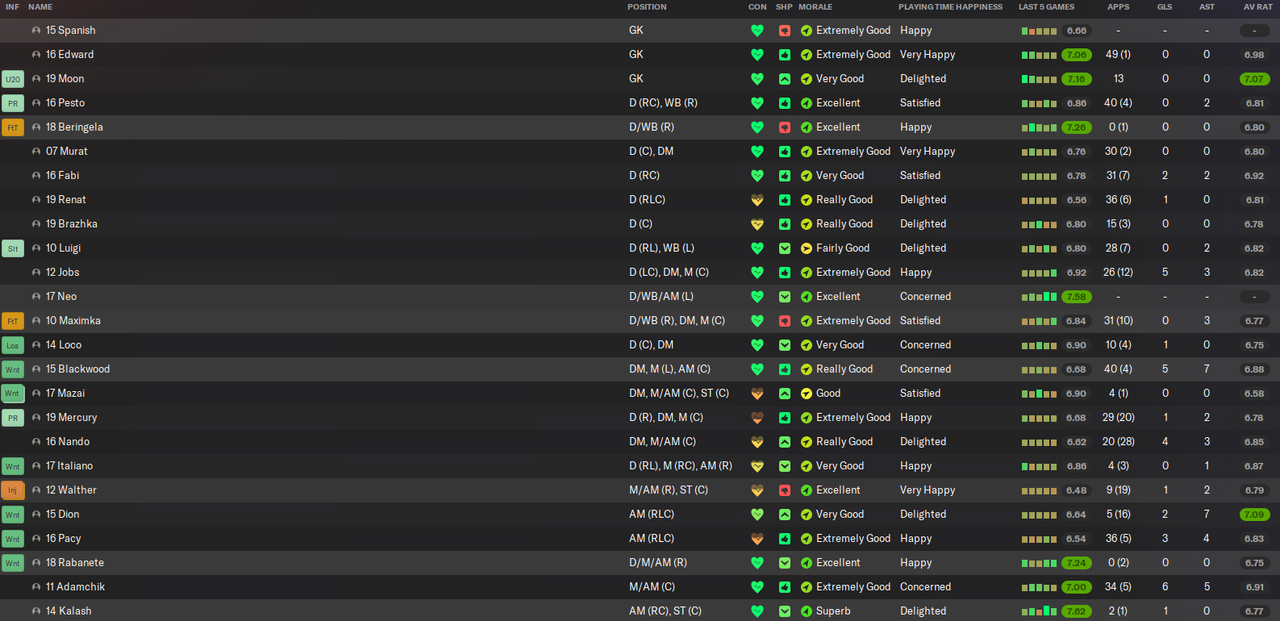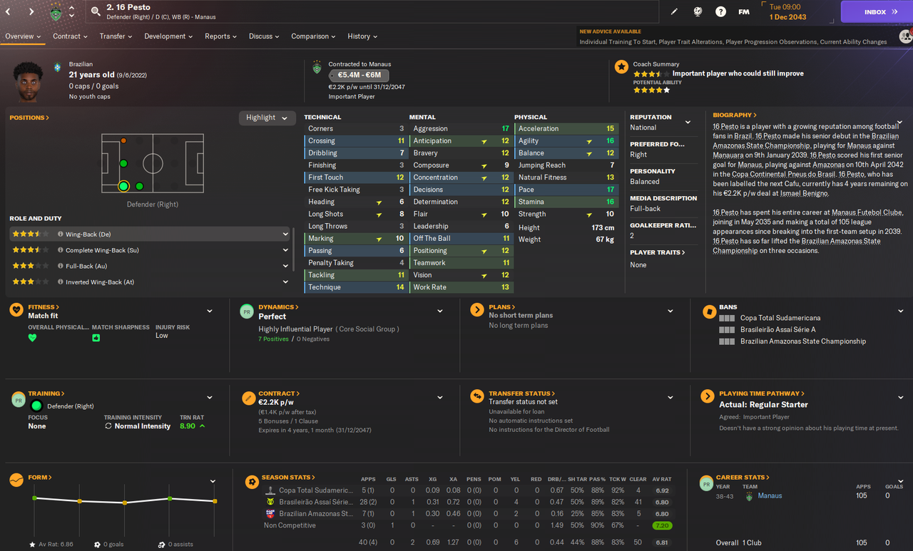 А написать есть что. Паренек стал нашим основным правым защитником и одним из лидеров. Очень сильно подрос в скиллах и теперь стоит более 5 лямов. Чувствую такими темпами отъезд в Европу уже не за горами. Но, конечно, только за много-много денег.