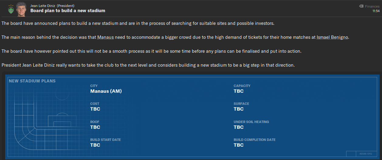 Руководство решило попилить бабла и собирается построить новый стадион. Пока никакой конкретики нет, но напоминаю, что в Манаусе есть Арена да Амазония на почти 45к мест.