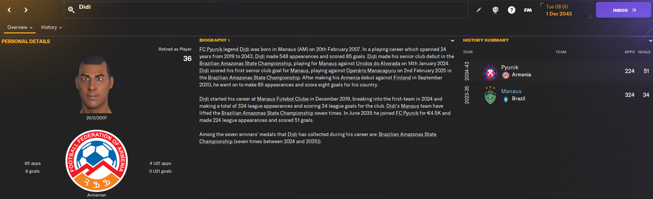 Арменчик был самым перспективным арчибальдой первого выпуска и оправдал все надежды, а может где-то даже превзошел себя, на статус педры точно наиграл. У воспитанника тогда еще совершенно заштатного Манауса получилась великолепная карьера, которая оказалась разделена на две почти равные части: