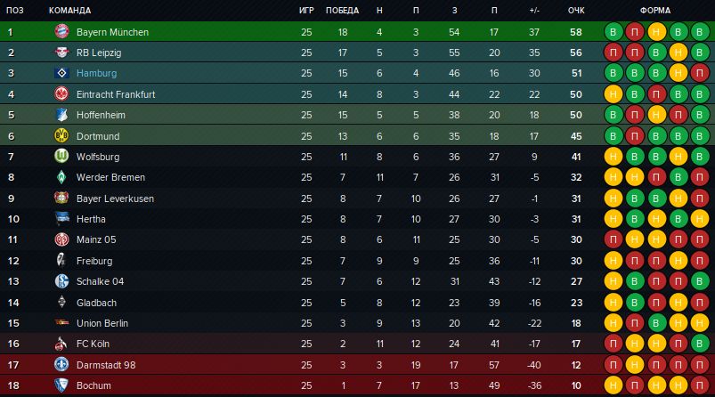 Турнирная таблица второй Бундеслиги после 29-го тура