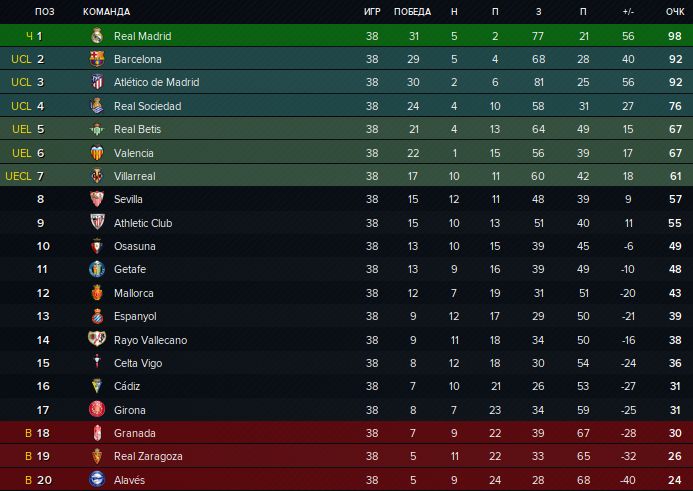 Восемь побед подряд на финише сезона (с суммарной разницей мячей 25:2) обеспечили «Баварии» очередной чемпионский титул. Но если в прошлом сезоне мюнхенцам для этого потребовалось всего 73 очка, то в этом и «Лейпциг», и мы превзошли этот показатель, вынудив гегемона поднапрячься. «Хоффенхайм» в предпоследнем туре проиграл «Айнтрахту» в очной встрече, а в заключительном уступил ему последнее место в Лиге чемпионов. «Кёльн» после смены тренера выиграл 4 из 5 последних матчей и сохранил прописку в элитном дивизионе. Более того, «козлы» взяли Кубок Германии, обыграв в финале «Хоффенхайм» (2:1), и получили путёвку в Лигу Европы. Место в Лиге конференций досталось «Дортмунду», но боссам клуба этого показалось недостаточно, и Роналд Куман был уволен по окончании сезона. Покинул свой пост и Даниэль Фарке, не сумевший спасти «Бохум» от понижения в классе. Из второй Бундеслиги поднимаются три команды: возвращаются вылетевшие в прошлом году «Штутгарт» и «Аугсбург», а также «Гройтер Фюрт», взявший верх над «Дармштадтом» в стыковых матчах.