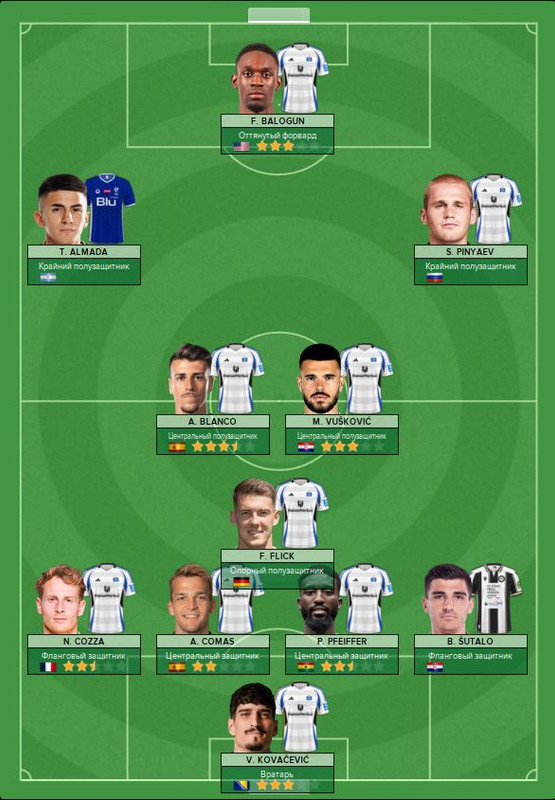 КовачевичБ.Шутало (Амброзиус, 86), Пфайффер, Комас, ЛуннФлик, Вушкович (Штиллер, 76), БланкоПиняев (Глацель, 76), Альмада (Кнауфф, 66) — Балоган (Мбюкю, 66).