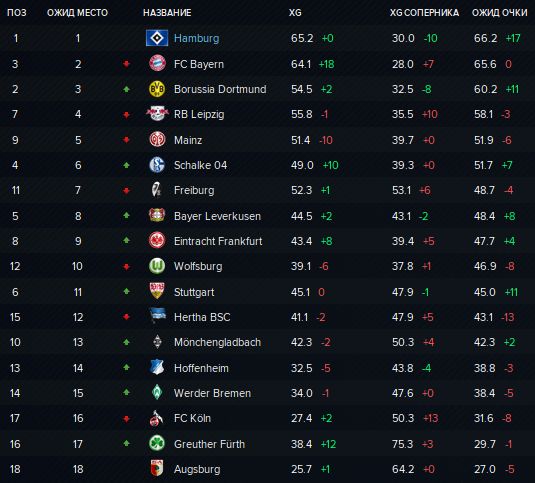 Таблица xG