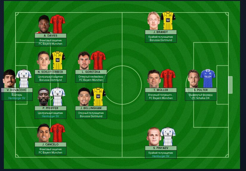В символической сборной сезона в Бундеслиге практически поровну представлены все клубы-призёры.