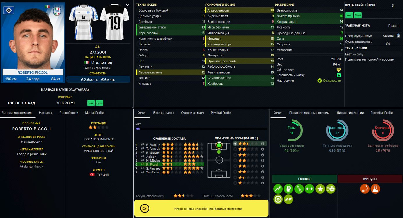 Роберто ПИККОЛИ («Галатасарай», Турция), 29(1) игр, 2324 минуты, 13+2 (11.61 xG, 2.66 xA), оценка 7.16. С этой арендой я явно угадал. Итальянец был признан лучшим нападающим сезона в турецкой лиге, финишировал пятым в снайперской гонке и стал седьмым по средней оценке.