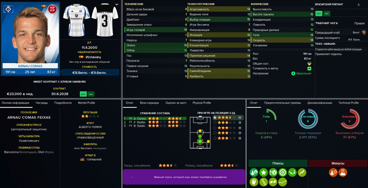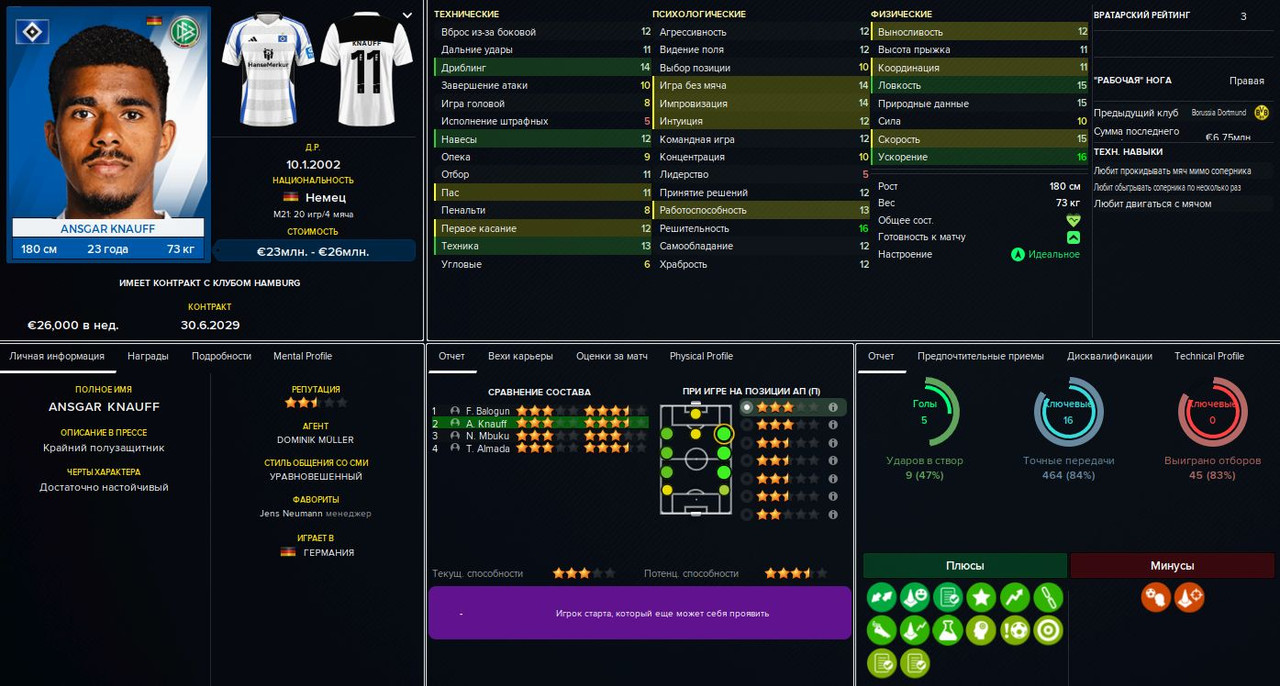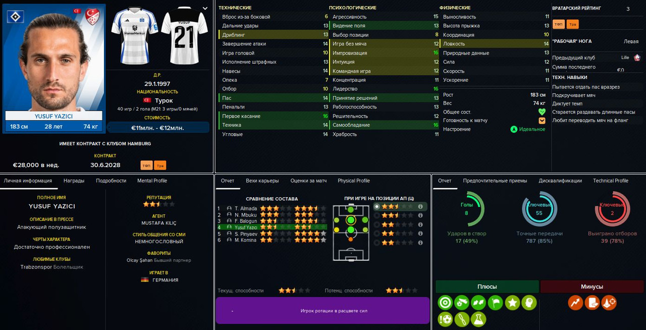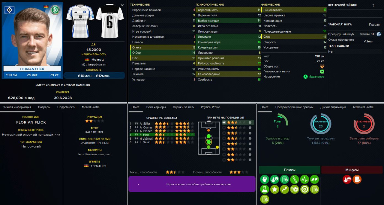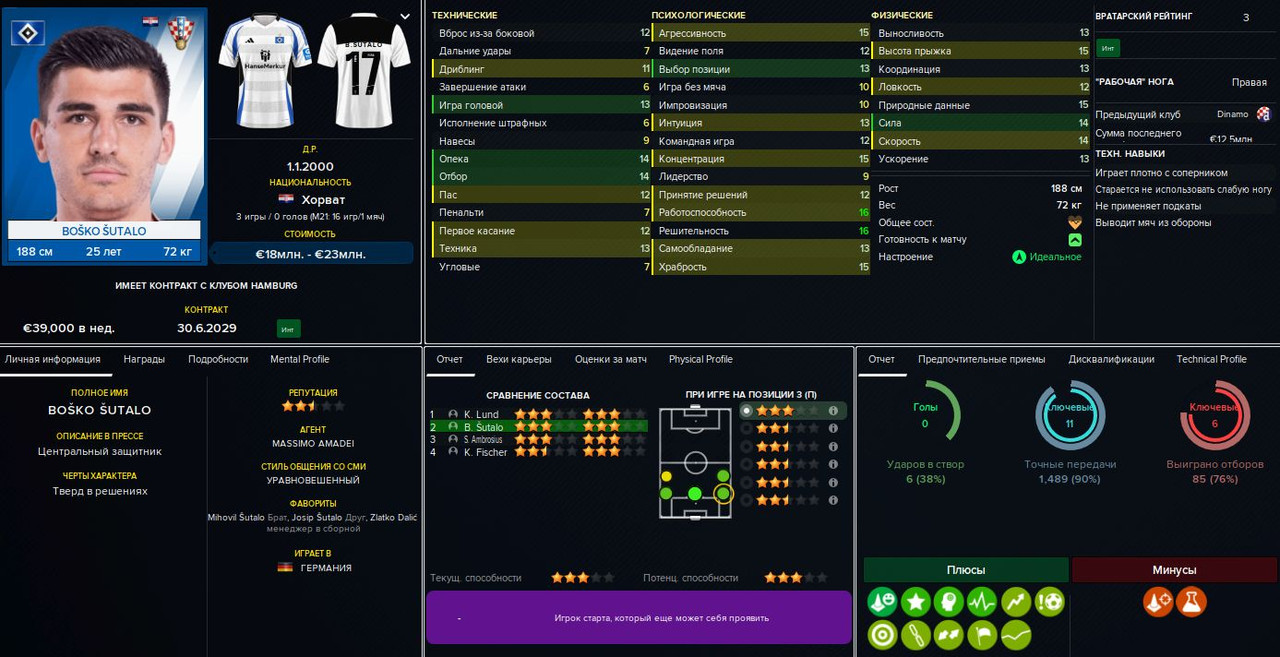 Выборка, конечно, не ахти (учитывая склонность FM завышать рейтинги голкиперам в любых «сухих» играх), но против «Гладбаха» бельгиец действительно провёл шикарный матч, а в остальных просто не допускал ошибок и выглядел увереннее того же Юханссона. С учётом возраста — уже очень и очень здорово.