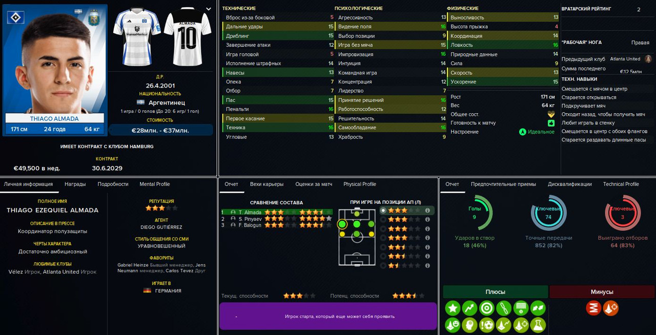 26(8) игр, 2024 минуты, 3+1 (1.35 xG, 3.49 xA), 1.78 прх/90, 0.89 отб/90, 0.71 обв/90, оценка 6.92.