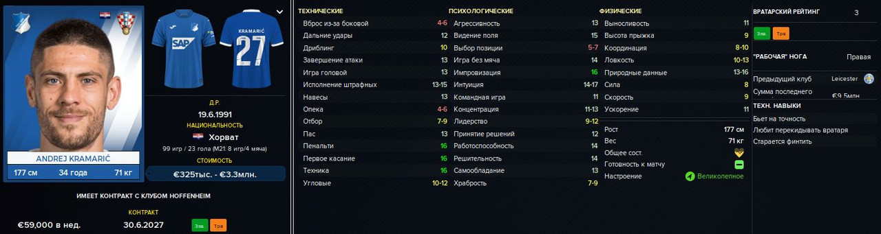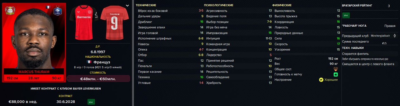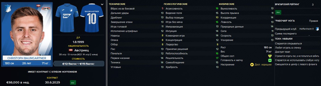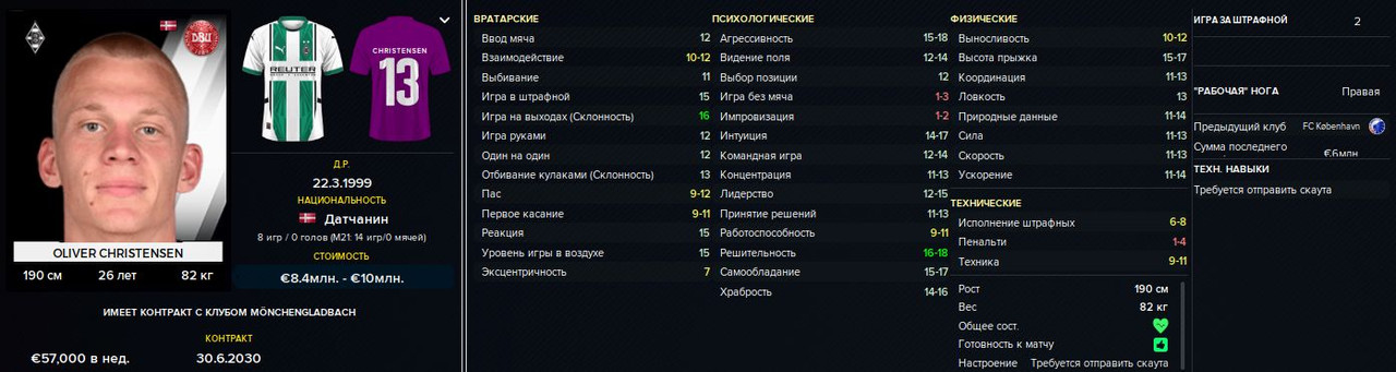 Выборка, конечно, не ахти (учитывая склонность FM завышать рейтинги голкиперам в любых «сухих» играх), но против «Гладбаха» бельгиец действительно провёл шикарный матч, а в остальных просто не допускал ошибок и выглядел увереннее того же Юханссона. С учётом возраста — уже очень и очень здорово.
